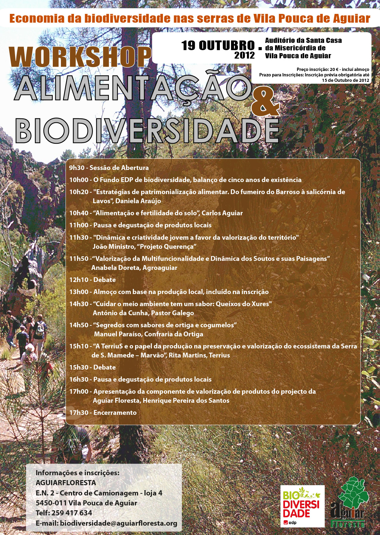 Contribuindo para este objetivo está previsto a realização do Workshop "Alimentação e Biodiversidade", no dia 19 de outubro, na Santa Casa da Misericórdia de Vila Pouca de Aguiar, que pretende apontar para as ligações entre a economia e a gestão da biodiversidade, em especial as relações entre a produção agrícola e a paisagem, procurando mobilizar os agentes económicos locais para o aproveitamento destes recursos.Faça aqui o download do programa.