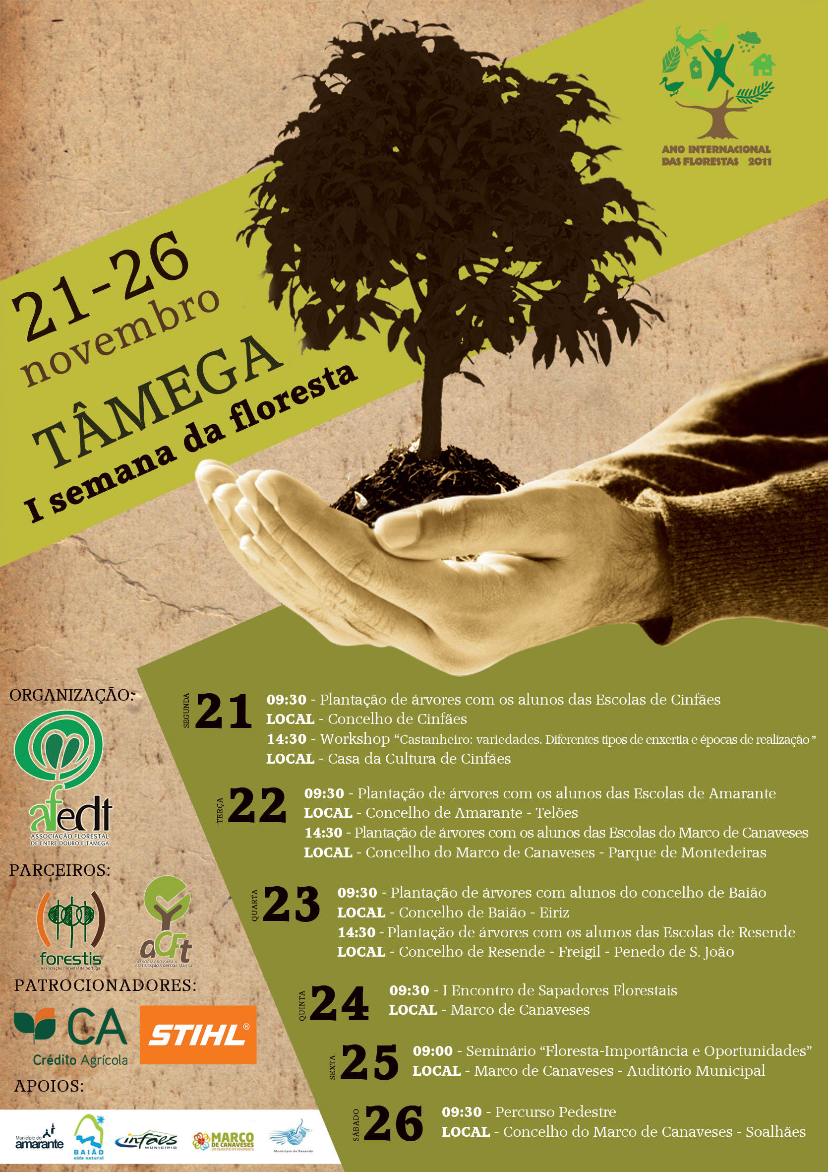 Na celebração do 15º aniversário e do Ano Internacional das Florestas, a AFEDTâmega - Associação Florestal de Entre Douro e Tâmega, vai promover no dia 21 a 26 de novembro a I Semana da Floresta Tâmega. Esta atividade tem como objetivo sensibilizar a sociedade para a importância que a floresta desempenha a nível económico, ambiental e social.