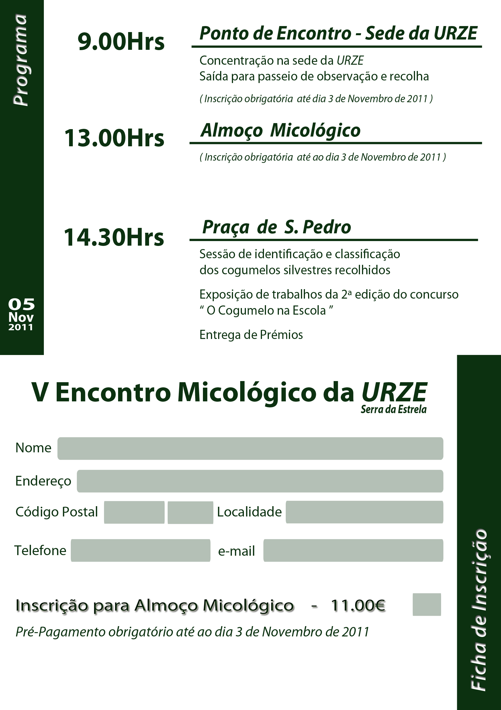 A URZE vai realizar no próximo dia 05 de novembro o seu 5º encontro micológico. O encontro terá início já com o tradicional passeio micológico para observação e recolha de cogumelos silvestres. A partida está marcada para as 9h00, com ponto de encontro na sede da URZE em Gouveia.