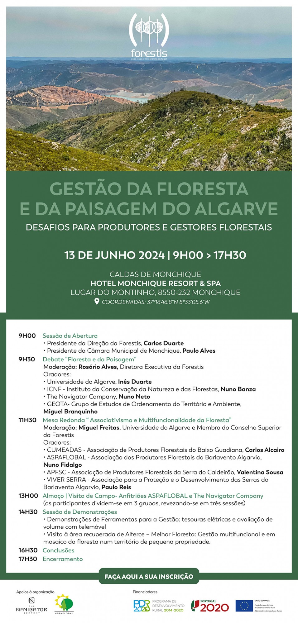 No próximo dia 13 de Junho, a Forestis vai promover o seminário intitulado "Gestão da Floresta e da Paisagem do Algarve", no Hotel Resort & SPA.