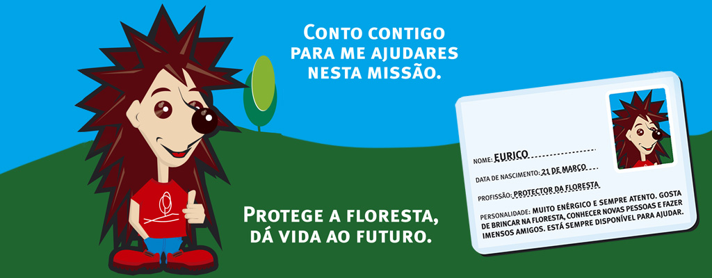 Vem aprender com o Eurico - o protetor da floresta, descarrega o folheto, banda desenhada e o jogo da florestina.